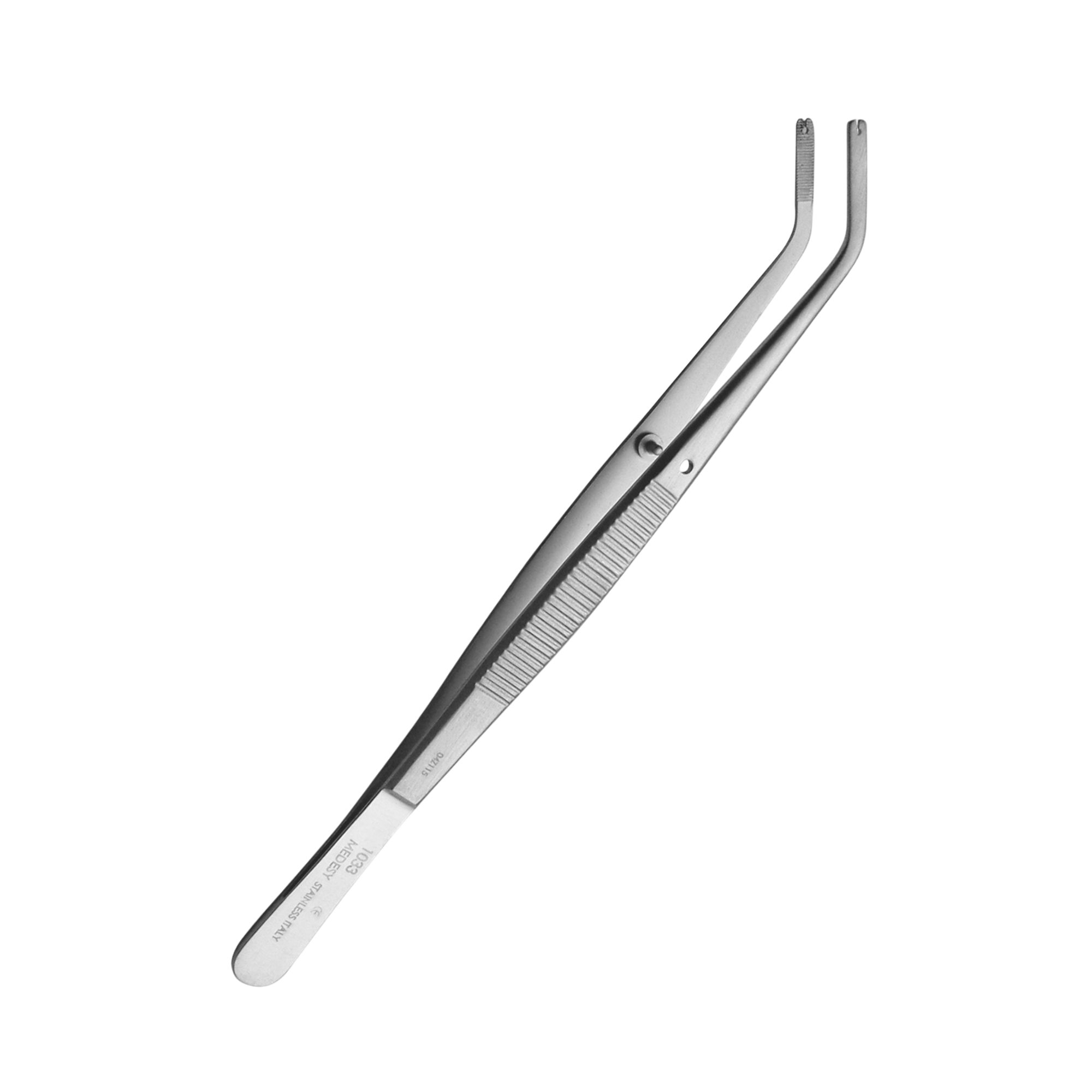 Instrumento quirúrgico utilizado para la manipulación y sujeción de agujas de sutura, caracterizado por su forma curva y puntas redondeadas que permiten un control preciso y atraumático; se destaca por su agarre firme, estabilidad y excelente maniobrabilidad, facilitando la colocación segura de suturas, especialmente en zonas de acceso limitado, y aportando comodidad y eficiencia durante el procedimiento.